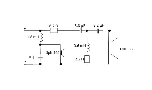 För att få högtalarna spelbara igen har jag inhandlat OBI T22 diskanter och tja, trodde att det skulle räcka med en kompletterande 4,7uF kondensator men så var det inte när jag tänkte ett varv till..