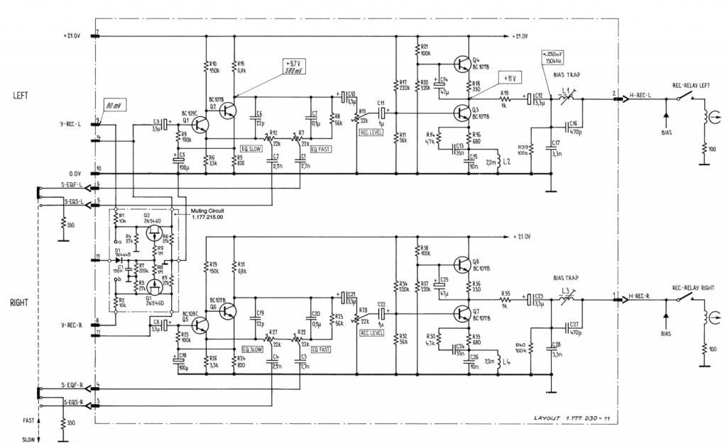 Direkt efter att jag bytt alla kondingar och trimpottar så hade jag en otrevligt diskant vid avspelning, det hördes en tydligt skillnad när man switchade mellan INPUT och TAPE.