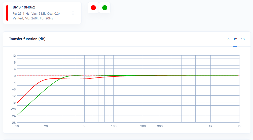 Har fått tag i två stycken BMS 18n862 som verkar omskrivna som fina basar här på forumet. Har simulerat lite fram och tillbaka på en portad låda men det verkar vara så att elementet är lite väl kapabelt till luftförflyttning vilket ger väldigt stora luftrörelser i portarna vid högre ljudtryck. Jag har läst ett par av de trådar som handlar om basreflexportar och då verkar det som att mina problem möjligen kan lösas genom att använda slitsportar istället för cirkulära portar.