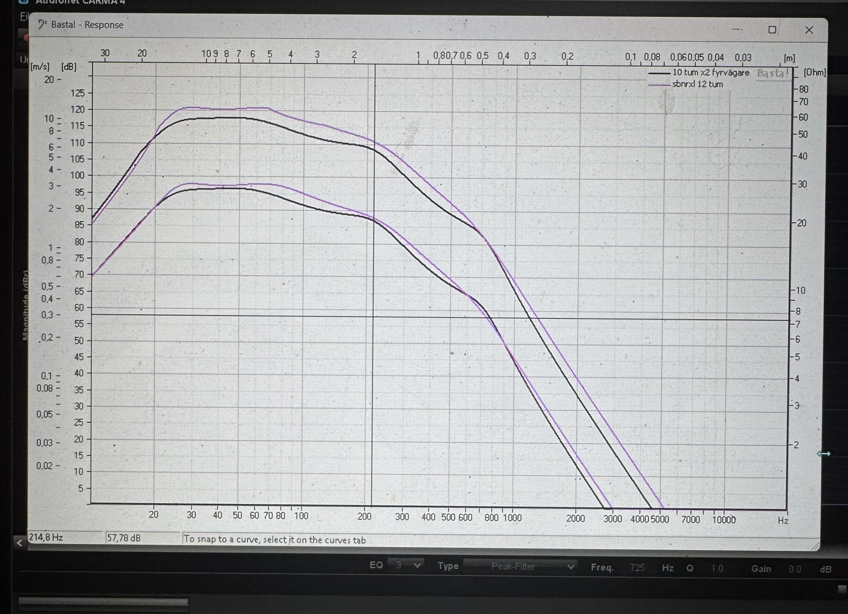 juanth skrev:Neuhausen skrev:Jag tittade på SB34NRX75-6 i 60l sluten låda och det ser inte hopplöst ut efter en snabb simulering i Vituixcads lådmodul.
