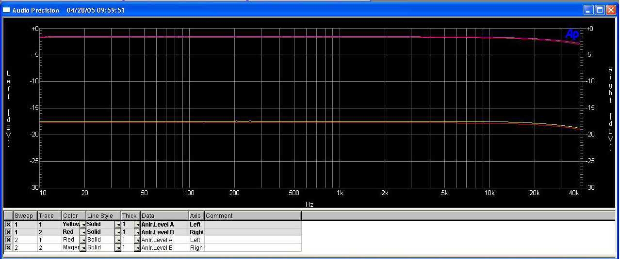 Den här mätningen ser kanske inte så bra ut i denna storlek, men om man ser på den större bilden, så ser man att THD + N ligger mellan 0.002 och 0.003 % :) vilket inte är alltför dålig IMHO.