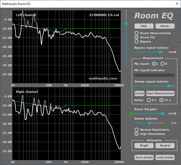I-or skrev:Det är kortfattat så att man öppnar Configuration Editor och lägger till de funktioner som man vill ha via det gröna +-tecknet och ställer in parametrarna för dem i det grafiska gränssnittet. Välj parametriska filter för ekvalisering. Lägg till lämplig pre amp-funktionalitet för att undvika klippning (0 dBFS förekommer i praktiken inte i smala frekvensband, varför man utan problem kan gå in en bra bit i "rött område" i det fallet om man inte tänker köra mätsinusar med fullt blås). Sedan kan man spara konfigurationsfilen under godtyckligt namn och när man vill aktivera just de inställningarna sparar man bara filen som config.txt. Kom ihåg att inställningarna endast är aktiva när filen är sparad som just config.txt.