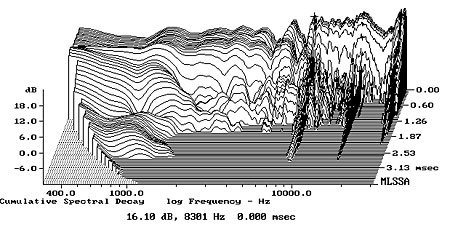 Fig.9 JBL 1400 Array, cumulative spectral-decay plot on tweeter axis at 50" (0.15ms risetime).