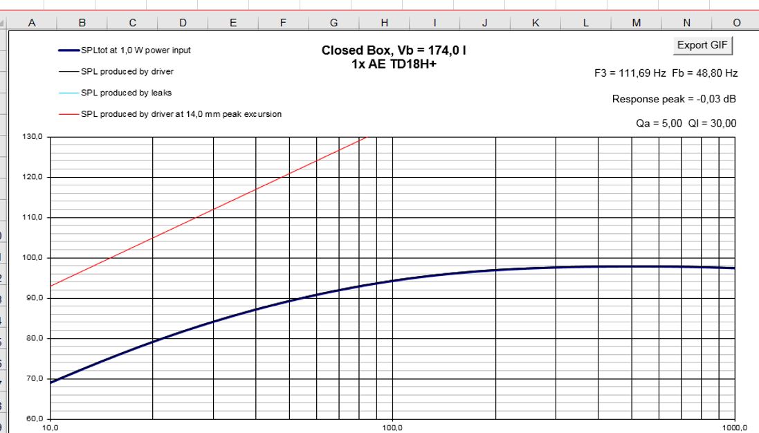 Jag körde på Jonas Asps resonemang, att man bör se sub + rum som ett system och antog att basfrekvenser hos mig skulle få ett ganska rejält rumsstöd och under lägsta modfrekvensen ett vartefter ökande SPL under ca 20 Hz. -I och med att alla ytor är i betong och källarrummet är till ca hälften under jord. I så fall kunde det bli för mycket av svårkontrollerad för stark bas om högt Qtc-värde valdes.