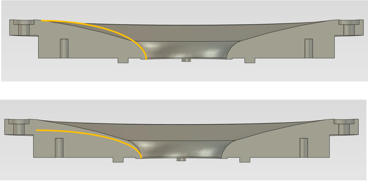 Själva övergången mellan brant och flack radie behöver vara hyggligt mjuk har jag märkt.